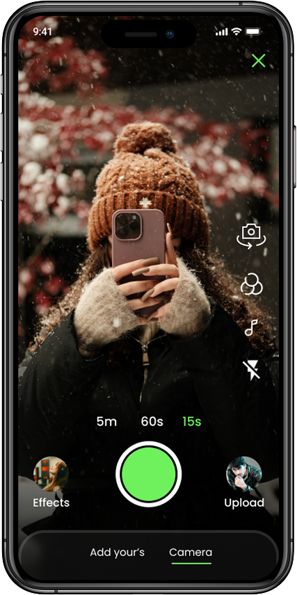Create videos with the built-in recording and fine-tune your content right inside the app.